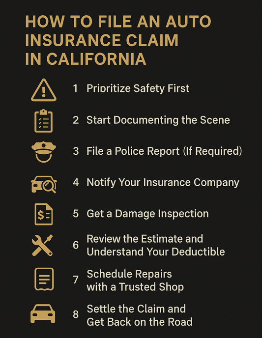 Filing an auto insurance claim after a crash can feel overwhelming, especially when you’re still shaken up or dealing with vehicle damage. Whether you’ve been in a fender bender or a more serious collision, knowing what to do, and when, can make a big difference in how smoothly the claims process goes. This guide breaks down each step to help drivers in West Hollywood, Hollywood, and across California handle a car insurance claim with confidence.